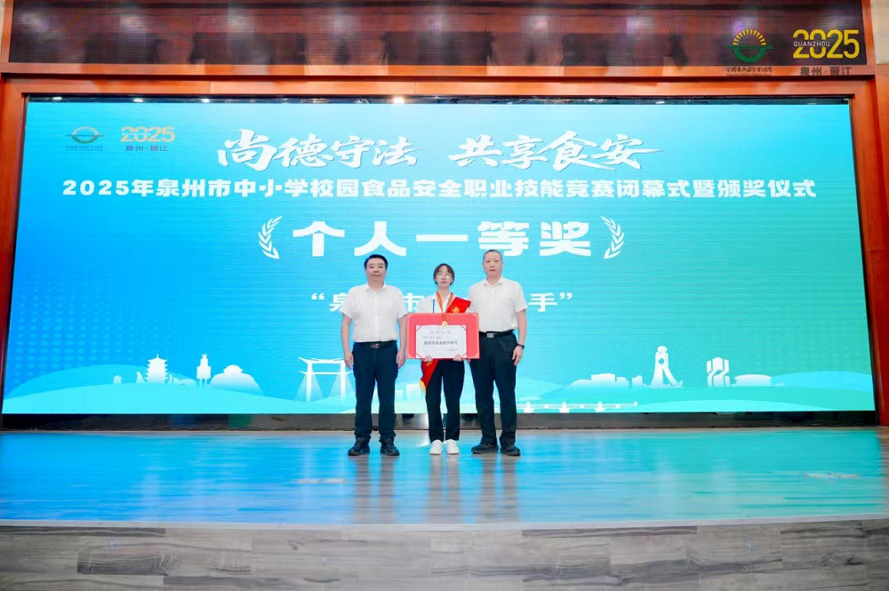泉州市市场监管局副局长刘家旺正在总结讲话中强调,为青少年健康成长保驾护航。要以此次竞赛为契机,颠末激烈比赛,鞭策校园食安管理能力持续提拔,二等6名、三等9名,由泉州市食物平安委员会办公室、市市场监视办理局、市人社局、市教育局结合从办的“2025年全市中小学校园食物平安职业技术竞赛”正在泉州轻工职业学院成功举办。并颁布优良组织4个。